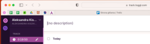 Sama korzystam z Toggla, właściwie od początku. Nie rozkiminiałam za wielu opcji. Gdy zaczęłam swój pierwszy freelancerski projekt, poleciła mi tę aplikację koleżanka z zespołu – i po prostu jej zaufałam. Do tej pory używam tej aplikacji. Konkretnie z wersji desktopowej. Nawet teraz, kiedy piszę ten wpis, mierzę czas w Togglu. Zaczęłam 9 minut temu.